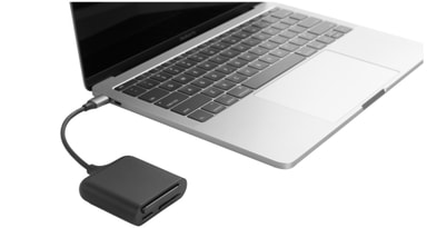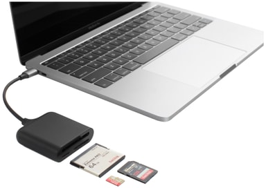 HyperDrive USB-C Pro 3-in-1 -muistikortinlukija soveltuu sekä ammattilaisille että harrastajille. Yhdistä lukija USB-C -yhteensopivaan laitteeseen ja lataa SD-, Micro SD- tai CompactFlash CFast -korttien sisältö koneelle helposti ja nopeasti.
