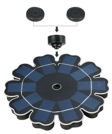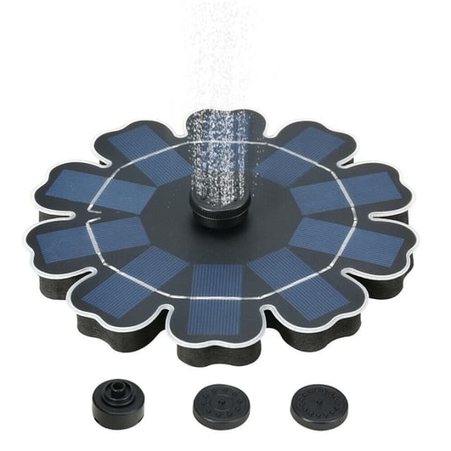 Tällä pienellä kelluvalla suihkulähteellä, joka toimii täysin aurinkoenergialla, voit koristella lammikkoasi tai lintukylpyäsi. Suihkulähteessä on 2 erilaista suutinta, joten voit valita, miltä suihkulähteen suihkut näyttävät. Mitä enemmän aurinkoa on, sitä kovempaa suihkulähde suihkuttaa! Suihkulähde on täysin johdoton ja sopii kaikenlaisiin lampiin.