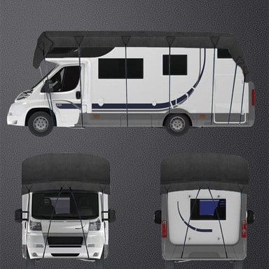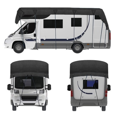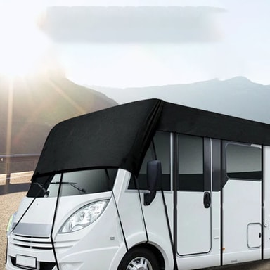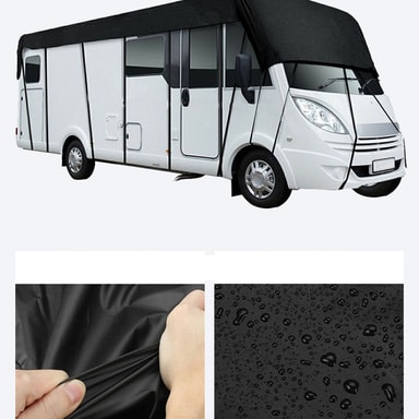 Vedenpitävä ja pölytiivis: Tämä matkailuauton suojus on suunniteltu antamaan ihanteellinen suoja sateelta, lumelta, pölyltä ja muilta ympäristötekijöiltä pitäen matkailuautosi puhtaana ja kuivana.