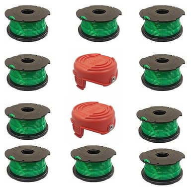 Täydellinen yhteensopivuus: Tämä kela- ja lukkosarja on erityisesti suunniteltu yhteensopivaksi Black+Decker GL9035-QS-, GL8033-QS-, STC5433PC-QW-, STC5433B-QW- ja A6486-siimaleikkureiden kanssa, mikä varmistaa saumattoman istuvuuden ja optimaalisen suorituskyvyn.