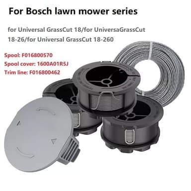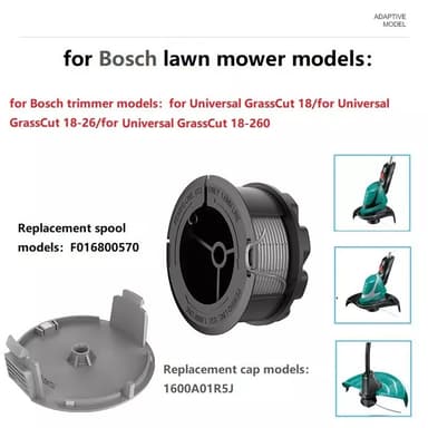 Yhteensopivuus: Yhteensopiva Universal GrassCut 18-26 -ruohonleikkuupään F016800570 kanssa, sopii Bosch-trimmerimalleihin ART 23 SL (3600HA5000), ART 23 SL (3600HA5070), ART 2300 (3600 (3600)), 02HA5, 0200 (0200) 26 SL (3600HA5100), ART 26 SL (000000), (HA5170) ART Easy.