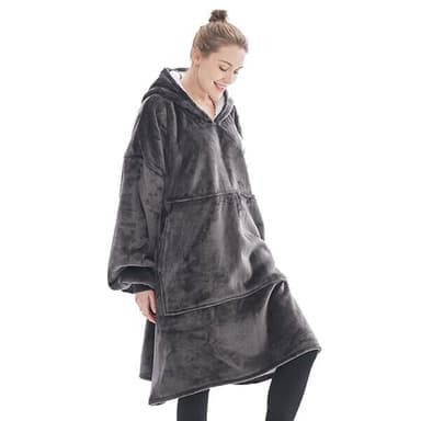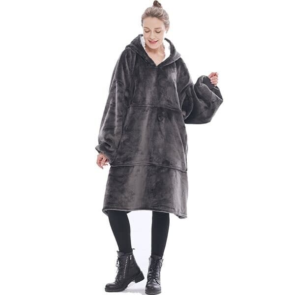 Tämä ylisuuri huppari tarjoaa täydellisen yhdistelmän isoa, kodikasta peittoa ja lempipuseron mukavuutta. Pehmeästä fleece- ja lampaannahkamateriaalista valmistettu huppari pitää sinut lämpimänä ja mukavana, olitpa sitten loikoilemassa kotona, kaupungilla tai katsomassa peliä. Huppari on myös tarpeeksi monipuolinen käytettäväksi aamutakkina, kylpytakkina tai ylimääräisenä peittona.