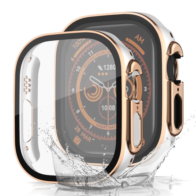 Tehostettu suojaus: Valmistettu korkealaatuisista PC- ja karkaistuista lasimateriaaleista, tämä suojakotelo on vedenpitävä, naarmuuntumaton ja iskunkestävä, jotta Apple Watch pysyy turvassa.