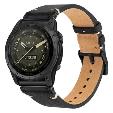 • Laadukas nahkainen kellon ranneke, yhteensopiva Garmin Fenix 8/7X/3 -tyylikkään korvausrannekkeen kanssa Musta 26 mm