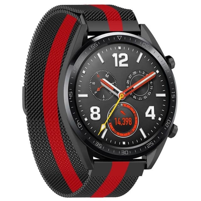 Musta / punainen ruostumattomasta teräksestä valmistettu rannekoru magneettisella lukolla Huawei Watch GT / Magic / TicWatch Pro. Mukava, puhdas ja käytännöllinen.