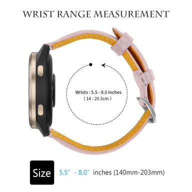 Ensiluokkainen nahkamukavuus: Tämä kellon ranneke on valmistettu korkealaatuisesta nahasta, ja se tarjoaa poikkeuksellisen mukavuuden ja ylellisen tunteen ihoa vasten. Laadukas nahka varmistaa hengittävyyden estäen ärsytystä jopa pitkäaikaisessa käytössä. Nahan pehmeä rakenne muotoutuu ranteeseesi ajan myötä tarjoten yksilöllisen ja mukavan istuvuuden. Tämä ensiluokkainen materiaali ei ainoastaan paranna käyttökokemusta, vaan myös lisää ripauksen hienostuneisuutta älykelloosi, mikä tekee siitä ihanteellisen valinnan niille, jotka arvostavat sekä mukavuutta että tyyliä. Yhteensopiva Garmin Venu 3S ja Huawei GT4/5/6 41MM/42MM kanssa.