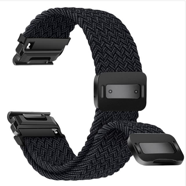 • Pikalukitus magneettinen elastinen punottu nylonranneke, yhteensopiva Garmin Fenix -sarjan kanssa Musta 26 mm