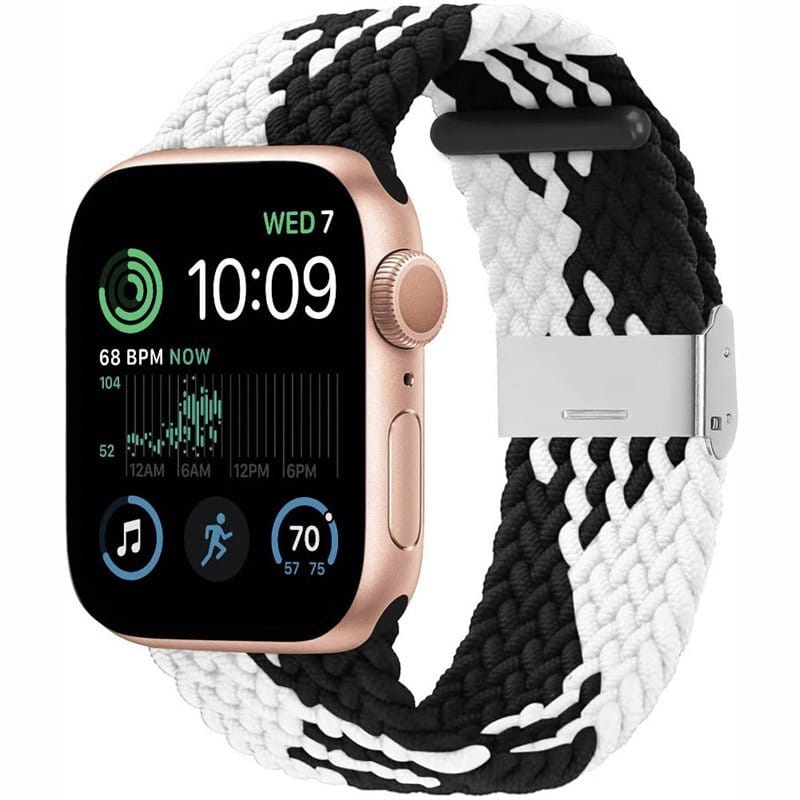 Punottu elastinen rannekoru Apple Watch SE 2022 44mm - Musta/ValkoinenTutustu ominaisuuksiin