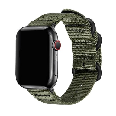 Nato-ranneke Apple Watch SE 3 40mm: lle pikakiinnityksellä. Ranneke on valmistettu nailonista, mikä antaa sille tyylikkään ulkonäön ja miellyttävän tunteen.