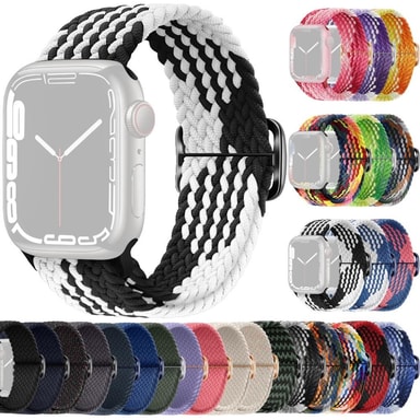 Joustava punottu ranneke Apple Watch Series 7-9 41mm: een nopeasti ja helposti säädettävällä soljella. Ranneke on valmistettu nailonista, mikä antaa sille tyylikkään ulkonäön ja miellyttävän tunteen.Tutustu ominaisuuksiin