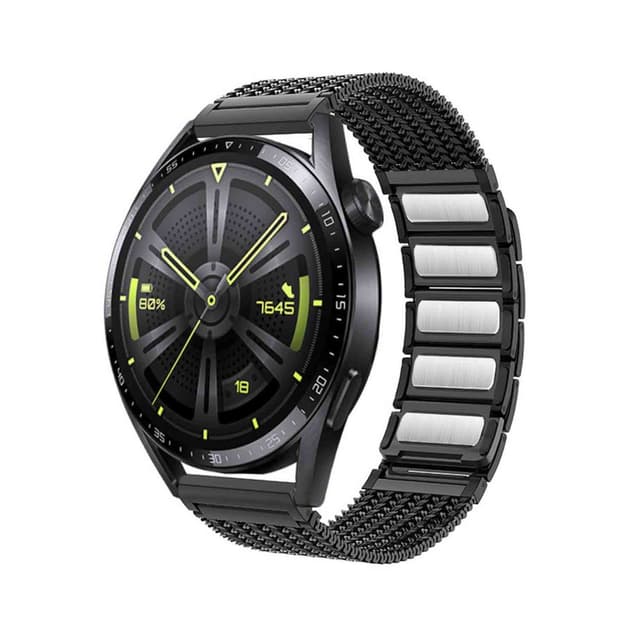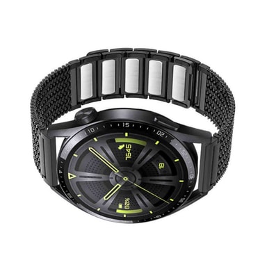 Ensiluokkainen ruostumaton teräs: Tämä korkealaatuisesta ruostumattomasta teräksestä valmistettu ranneke tarjoaa poikkeuksellisen kestävyyden kulumiselle. Ruostumaton teräs takaa pitkäikäisen ja tyylikkään lisävarusteen älykellollesi. Kudottu muotoilu parantaa rannekkeen joustavuutta ja mukavuutta, mikä tekee siitä ihanteellisen jokapäiväiseen käyttöön. Titaaninharmaa viimeistely lisää ripauksen hienostuneisuutta täydentäen monenlaisia kellotauluja ja asuja. Tämä ensiluokkainen ruostumattomasta teräksestä valmistettu ranneke on yhteensopiva Huawei GT -sarjan, Samsungin ja Garminin kanssa tarjoten hienostuneen ja mukavan käyttökokemuksen.