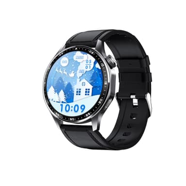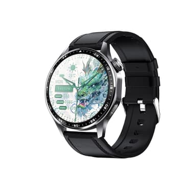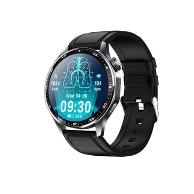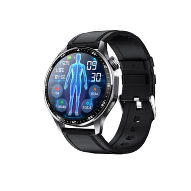 Älykello, jossa EKG, sykemittari, verenpainemittari ja askelmittari Musta nahkaranneke