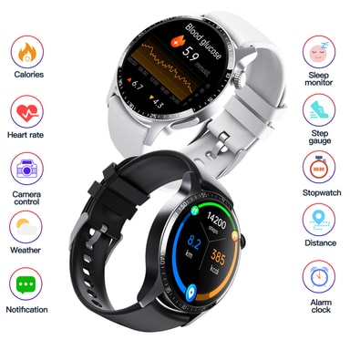 Päätoiminnot: äänipuhelu (yhden näppäimen yhteys), veren happi (tuki yöunen veren happea), verenpaine (tuki yksityistä tilaa ja 24 tunnin tunnistusta), verensokeri (tuki yksityistä tilaa ja 24 tunnin tunnistusta), MET ( energian aineenvaihdunnan taso) , Tarkka akun näyttö, syke (tukee 24 tunnin tunnistusta), kehon lämpötilatesti (tukee 24 tunnin havaitsemista), ääniavustaja, kellon mukautettu herätyskello, päivittäiset toiminnot: unenvalvonta, askelten laskenta, matka, kalorit , musiikin toisto, sekuntikello, lähtölaskenta, Laskin, säänäyttö, naisten kuukautiskiertotoiminto, kaukosäätimen kamera, nosta rannetta kirkastaaksesi näyttöä, etsi puhelin, soittomuistutus (soittajan numero/nimi), viestimuistutus, istumamuistutus, sydän nopeuden hälytysmuistutus jne., sisäänrakennettu 6 valitsinta + 1 numerovalintaa (yli 100 valinnaista) + 1 mukautettu valitsin