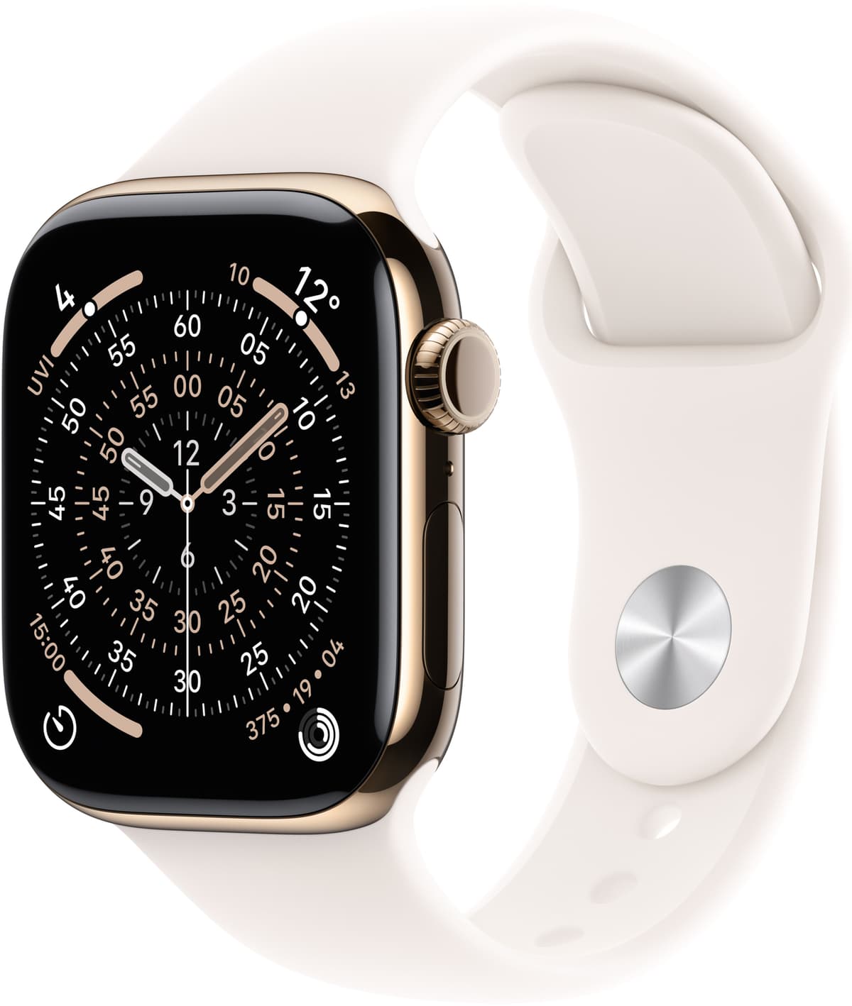 Apple Watch S11 42mm CEL (kultatitaani/punanhäivä urheiluranneke) M/L