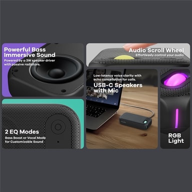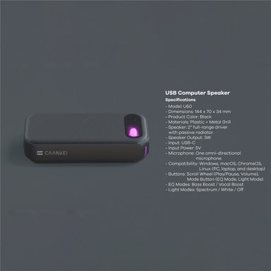 CAANKEI-konferenssikaiutin RGB-valo USB-C-johdollinen tietokonekaiutin mikrofonilla【Plug & Play USB-C -liitäntä】Helppo liittää USB-C:n kautta välittömään plug-and-play-toimintoon, yhteensopiva Windowsin, macOS:n, ChromeOS:n ja Linuxin kanssa.【KirTutustu ominaisuuksiin