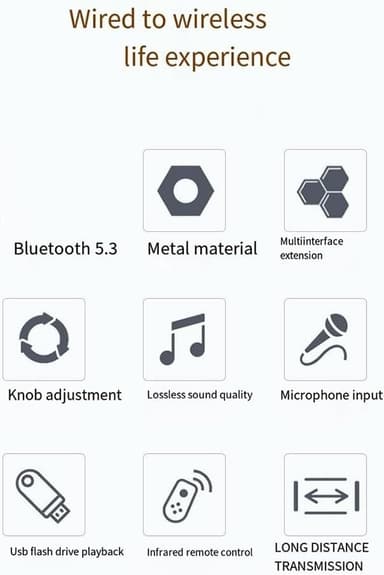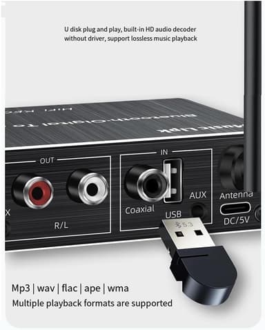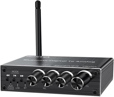 NÖRDIC Bluetooth 5.3 Audio Vastaanotin on monipuolinen sovitin, joka tukee Bluetooth-vastaanottoa, USB-muistipalvelua ja mikrofonisisääntuloa. Useiden sisääntulo- ja lähtömahdollisuuksien, kuten 3,5 mm AUX ja RCA, avulla se tarjoaa vakaan langattoman äänikokemuksen jopa 15 metrin etäisyydeltä.Tekniset tiedot: