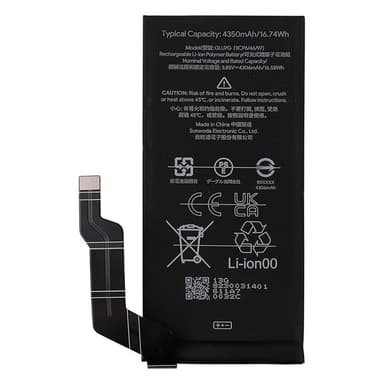 • Google Pixel 6a:n akku, 3,85 V, 4306 mAh, litium-polymeeriakku. Yksikön koodi: GLU7G.