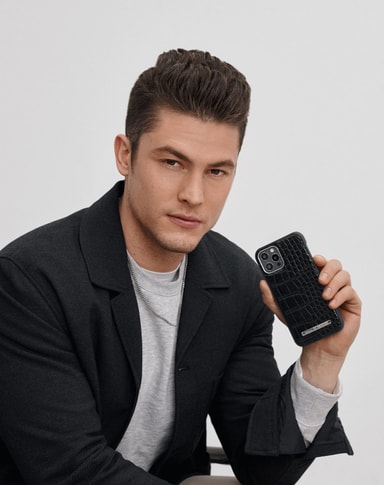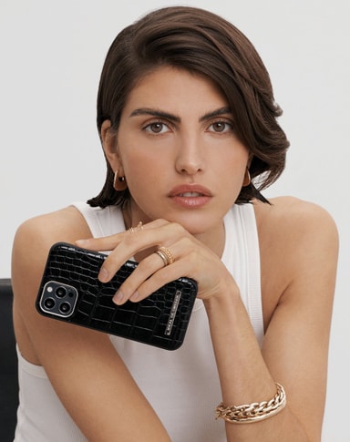 Hopeinen Neo Noir Croco Atelier -kuori uudistaa klassisen mustan modernilla muotoilulla, jossa yhdistyvät Croco-tekstuurin ainutlaatuinen ulkonäkö ja mustan värin ikuinen syvyys.