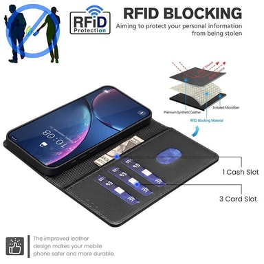 Varustettu RFID-suojatekniikalla tämä kotelo suojaa henkilökohtaisia tietojasi luvattomalta skannaukselta ja pitää tietosi turvassa