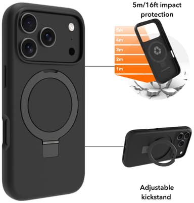 dbramante1928 Iceland Ultra iPhone 17 Pro -suojakuori suojaa laitettasi jopa 4 metrin pudotuksilta ja säilyttää laitteen esteettisen ulkonäön. Se on MagSafe-yhteensopiva ja siinä on jalusta helppoa videoiden katselua varten.Tutustu ominaisuuksiin