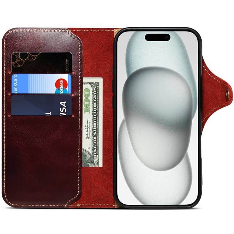 Denior lompakkokotelo nahkaa iPhone 17 Pro - Häränverinen