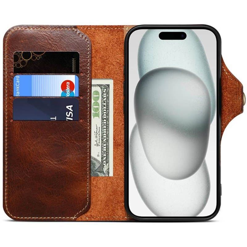 Denior lompakkokotelo nahkaa iPhone 17 - Ruskea