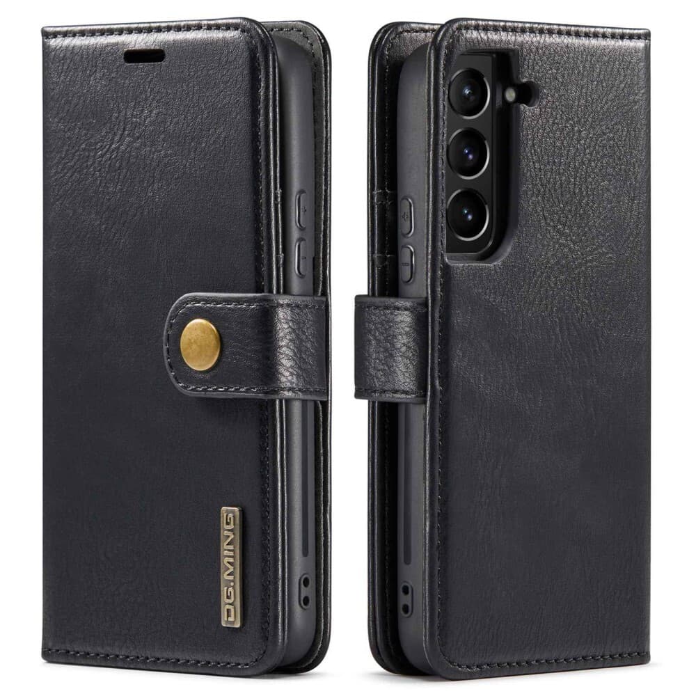 Nahkalompakkokotelo, jossa on magneettisesti irrotettava sisäkuori.