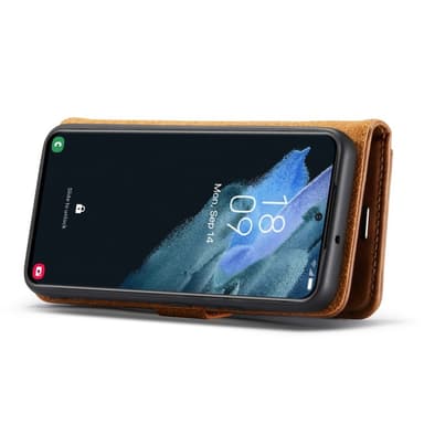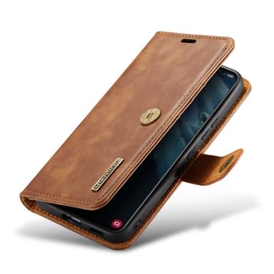 Nahkalompakkokotelo, jossa on magneettisesti irrotettava sisäkuori.