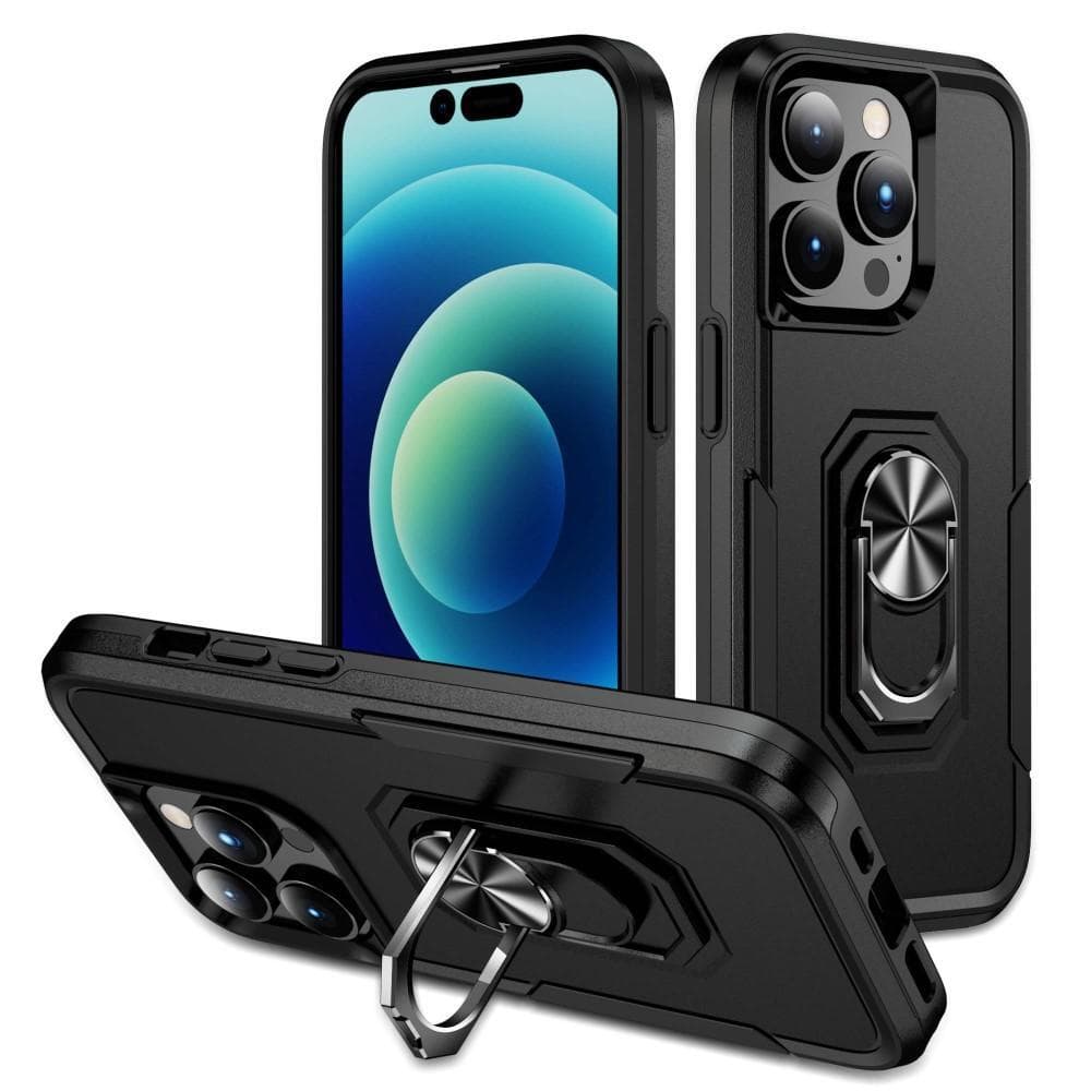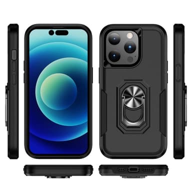 iPhone 14 Pro Max iskunkestävä TPU+PC Kickstand Puhelinkotelo Autoon kiinnitettävä metallilevy - musta