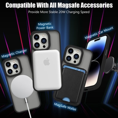 TOIMINTO: Puhelinkuoremme on erityisesti suunniteltu käytettäväksi MagSafen kanssa, joten voit helposti kiinnittää magneettisia lisävarusteita, kuten latureita, pidikkeitä ja muuta.