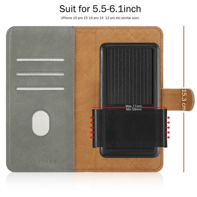 Monitoiminen: iPhone 17 PRO-laitteille sopiva universaali suojakotelo tarjoaa magneettikiinnitys, 2 korttipaikkaa ja rahapussin. Se on käytännöllinen lompakko, joka taitettuna muuttuu iskunkestäväksi 360 asteen kännykkäkoteloksi.