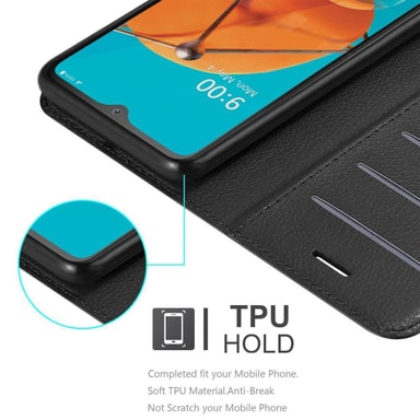 SUUNNITTELU: Kirjatyylisessä keinonahkakotelossa on korttipaikat ja vaakasuora jalustatoiminto, jolla voit helposti muuntaa kotelon näytöksi.