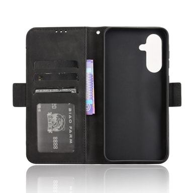 Samsung Galaxy A36 5G Case Multi Card Holder Telinekotelo - MustaLaadukas PU-nahka ja TPU-materiaali, kattava suojausSisäpuolella korttilokero ja kassatasku + ulkopuolella erillinen korttiteline, todella iso kapasiteettiTuki kätevään handsfree-kokemuTutustu ominaisuuksiin