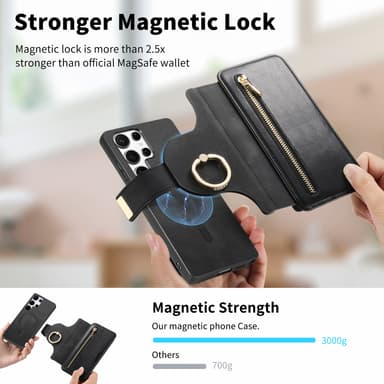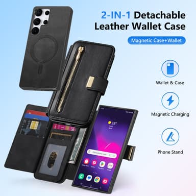 Kaksi yhdessä -muotoilu: Tässä Samsung Galaxy -puhelinkotelossa on irrotettava magneettinen lompakko, jonka ansiosta voit irrottaa puhelimen kätevästi lompakosta tarvittaessa. Käytä ohutta puhelinkuorta erikseen tai kiinnitä lompakko kokonaisratkaisua varten.