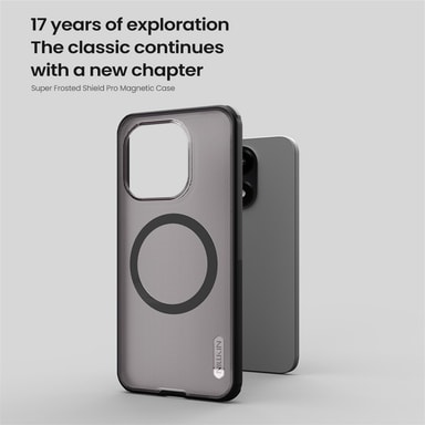 Super Frosted Shield Pro on puhelinkotelo, joka yhdistää kovan PC-paneelin ja pehmeän TPU-reunan tarjoten kaksinkertaisen suojan. Huurrettu, läpinäkyvä musta takapinta hylkii sormenjälkiä ja pitää kotelon siistinä. Molemmat sivut on käsitelty mattapintaisella UV-maalauksella, mikä takaa miellyttävän tuntuman ja tyylikkään ulkonäön. Sisäänrakennettu magneetti tekee kotelosta yhteensopivan magneettisten lisävarusteiden kanssa ja mahdollistaa langattoman latauksen. Kotelon rakenne suojaa tehokkaasti kolhuilta ja naarmuilta, ja se on helppo asentaa.