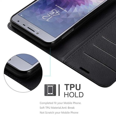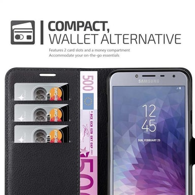 Lompakkokotelossa Samsung Galaxy J4 2018 -älypuhelimelle on korttipaikat ja jalusta-toiminto. Tällä kotelolla puhelimesi on täydellisesti suojattu. Kotelo on valmistettu korkealaatuisista materiaaleista. Kaikkiin portteihin pääsee vapaasti käsiksiTutustu ominaisuuksiin