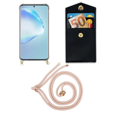 Cadorabo matkapuhelimen Suojakuori läpinäkyvästä TPU-silikonista johdolla ja pienellä kotelolla korteille ja rahalle