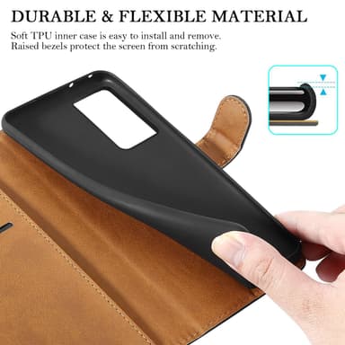 SUUNNITTELU: Kirjatyylinen tekonahkakotelo integroidulla kotelolla, joka tarjoaa matkapuhelimellesi täydellisen pidon. Läppä voidaan taittaa 360 astetta, joten se ei ole tiellä soitettaessa tai kirjoitettaessa.