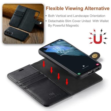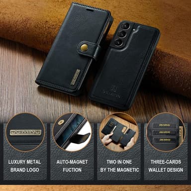 DG.MING Irrotettava 2-in-1 jaettu nahkalompakko Täyssuojaava suojakuori TPU-sisäkotelo Samsung Galaxy S22 5G:lle - Musta