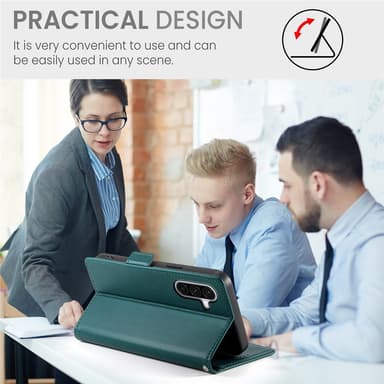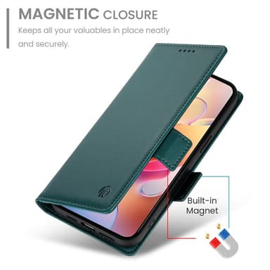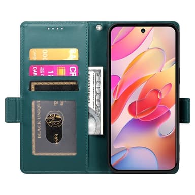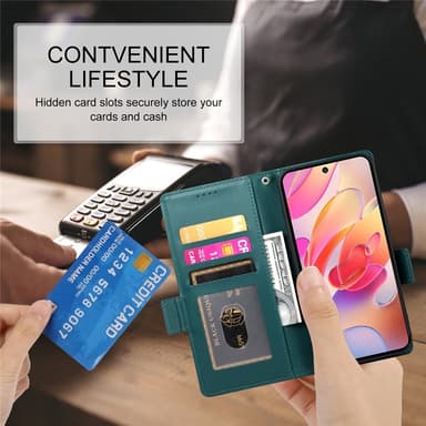 Tämä kotelo on valmistettu pehmeästä TPU-sisäkuoresta ja PU-nahkaisesta ulkopinnasta, tarjoten kestävyyttä ja laadukkaan tuntuman pitkäaikaiseen käyttöön. Monikäyttöinen muotoilu sisältää kolme korttipaikkaa ja yhden setelitaskun, joten voit kantaa tärkeimmät mukanasi ilman erillistä lompakkoa. Magneettiset sivulukot takaavat turvallisen ja helpon pääsyn puhelimeen ja kortteihin, pitäen kaiken paikoillaan. Kotelon voi taittaa jalustaksi, mikä tekee videoiden katselusta ja videopuheluista vaivatonta ilman käsiä. Se tarjoaa kattavan suojan iskuilta ja naarmuilta, säilyttäen samalla ohuen, tyylikkään ja laadukkaan ulkonäön.