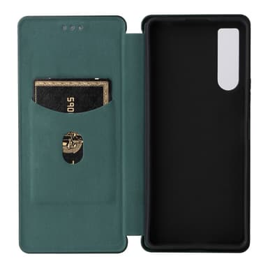 Lompakkokotelo, jossa on hiilikuituinen ulkonäkö ja erittäin pehmeä kangas sisäpuolella.