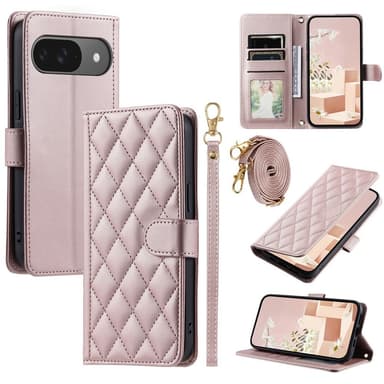 SKALO Google Pixel 10 Pro Tikattu Olkahihna Lompakkokotelo - Ruusukulta
