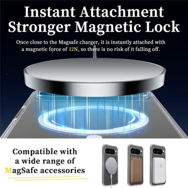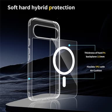 Tämä läpinäkyvä TPU-suojakuori yhdistää joustavan TPU-kehyksen ja jäykän PC-takapuolen, tarjoten kestävän suojan pudotuksia ja iskuja vastaan ilman mukavuuden heikentymistä. Sisäänrakennettu magneettirengas on yhteensopiva MagSafe-latauksen kanssa ja takaa tarkan kohdistuksen ja vakaan langattoman latauksen. Erittäin kirkas takapaneeli säilyttää puhelimen alkuperäisen ulkonäön ja värin, tarjoten lähes näkymättömän tuntuman. 2,0 mm paksu rakenne antaa lisäsuojaa arjen kolhuilta. Tarkat leikkaukset ja herkästi reagoivat painikkeet mahdollistavat helpon käytön ilman kuoren poistamista.