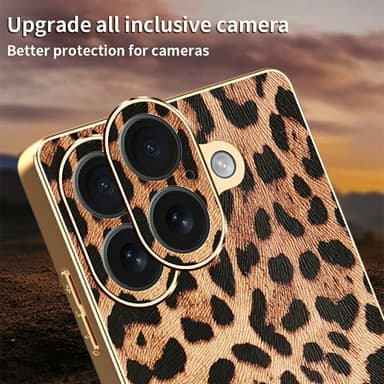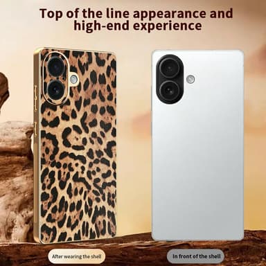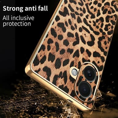 Tämä puhelinkuori yhdistää rohkean leopardikuvion ja kultasähköpinnoitetut reunat muodostaen tyylikkään ja ylellisen ilmeen. Valmistettu PU-nahasta, pehmeästä TPU-kehyksestä ja kovasta PC-taustasta, se tarjoaa joustavuutta ja kestävää suojaa. Sähköpinnoitettu pinta estää haalistumista ja säilyttää kiillon pitkään. Tarkat leikkaukset takaavat helpon pääsyn kameraan, portteihin ja painikkeisiin. Joustava kehys mahdollistaa nopean ja naarmuttoman asennuksen.