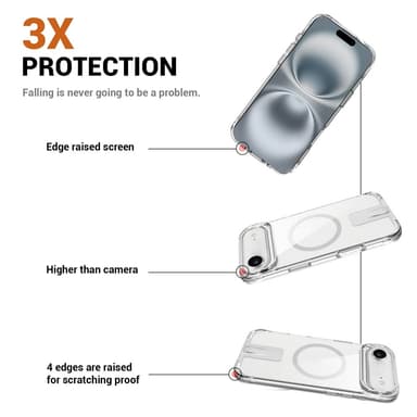 Tämä läpinäkyvä suojakuori yhdistää tyylin ja käytännöllisyyden. Sisäänrakennettu magneettirengas tukee langatonta latausta ja on täysin yhteensopiva MagSafe-lisävarusteiden kanssa.Tutustu ominaisuuksiin