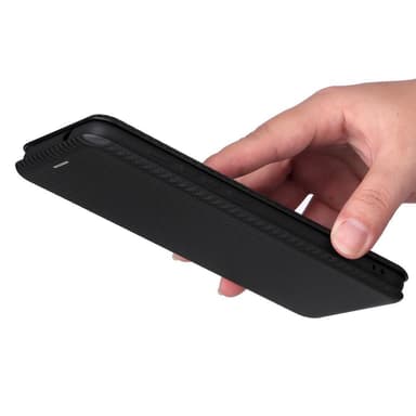 Lompakkokotelo, jossa on hiilikuituinen ulkonäkö ja erittäin pehmeä kangas sisäpuolella.