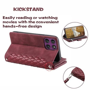 SKALO Motorola Edge 60 Pro 5G 005 Big Wallet Tikkikuvioitu Lompakkokotelo - Punainen