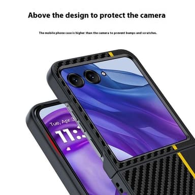 Carbon Fiber Flip on tyylikäs ja käytännöllinen puhelinkotelo, jonka erittäin ohut muotoilu säilyttää puhelimen virtaviivaisen ulkonäön ja tarjoaa samalla vahvan suojan. Hiilikuitutekstuuri parantaa otetta ja vähentää puhelimen putoamisriskiä. Valmistettu korkealaatuisesta PC-materiaalista kestävyyden takaamiseksi. Taitettava rakenne mahdollistaa helpon säilytyksen ja kuljetuksen, ihanteellinen liikkuvaan käyttöön. Täysi suojaus suojaa laitetta naarmuilta, iskuilta ja päivittäiseltä kulumiselta. Tarkat leikkaukset takaavat helpon pääsyn kaikkiin toimintoihin.