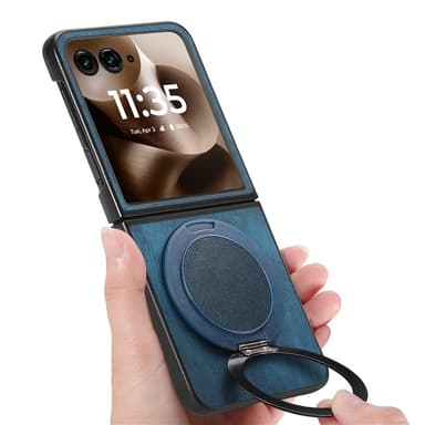 SKALO Motorola Razr 60 Ultra 5G D21 Kickstand Retro PU-Nahka Suojakuori - Sininen