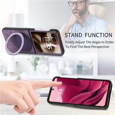 D21 Kickstand Retro PU-Nahka on tyylikäs ja toiminnallinen suojakuori, jossa on pyörivä jalusta handsfree-katseluun useista kulmista. Interaktiivinen pyörimistoiminto tarjoaa mukavuutta ja joustavuutta. Kuori on valmistettu korkealaatuisesta PU-nahasta, PC:stä ja TPU:sta, mikä tekee siitä naarmuuntumattoman ja kestävän. Retrohenkinen pinta antaa elegantin ulkonäön ja miellyttävän otteen. Sisäänrakennettu magneettirengas tekee kuoresta MagSafe-yhteensopivan ja varmistaa kiinnityksen magneettisiin autotelineisiin (autoteline ei sisälly pakkaukseen). Korotetut reunat suojaavat näyttöä ja kameraa naarmuilta ja iskuilta.